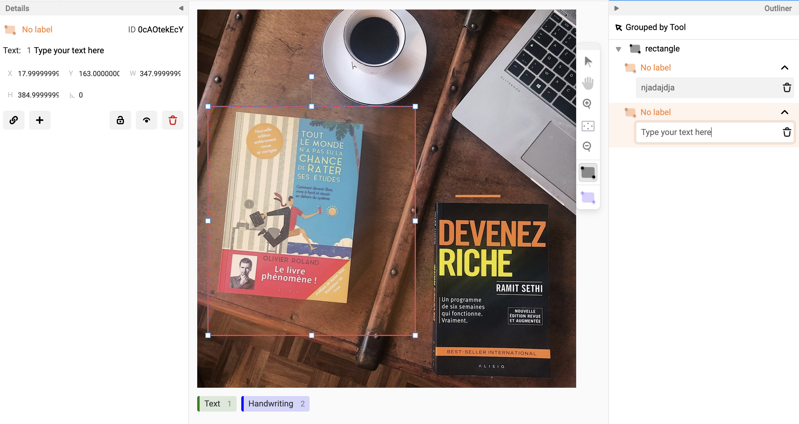 - Draw the bounding box or highlight the text that you want to label.
